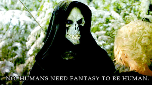 For the last several years, it’s been a holiday tradition for us to watch the wonderful adaptation of Terry Pratchett’s Hogfather, one of our most favorite holiday films. It’s full of great acting, silly banter (“I think my name is Bilious…I’m…the oh god of hangovers”) and brilliant writing. And Sir Terry makes a cameo appearance too!
